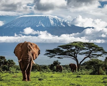 Kenia es sinónimo de aventura en estado puro. Aquí presenciarás la Gran Migración en Masai Mara, donde millones de ñus y cebras cruzan los ríos infestados de cocodrilos en uno de los espectáculos naturales más impresionantes del planeta. Los Cinco Grandes (león, leopardo, elefante, búfalo y rinoceronte) te esperan en paisajes que van desde las llanuras doradas del Serengueti hasta el imponente Kilimanjaro nevado como telón de fondo. Visitarás el lago Nakuru, teñido de rosa por millones de flamencos, y el Parque Nacional de Amboseli, donde los elefantes caminan majestuosos bajo el cielo africano. Conocerás a los guerreros masái, custodios ancestrales de estas tierras, y sentirás cómo tu corazón late al ritmo de África.